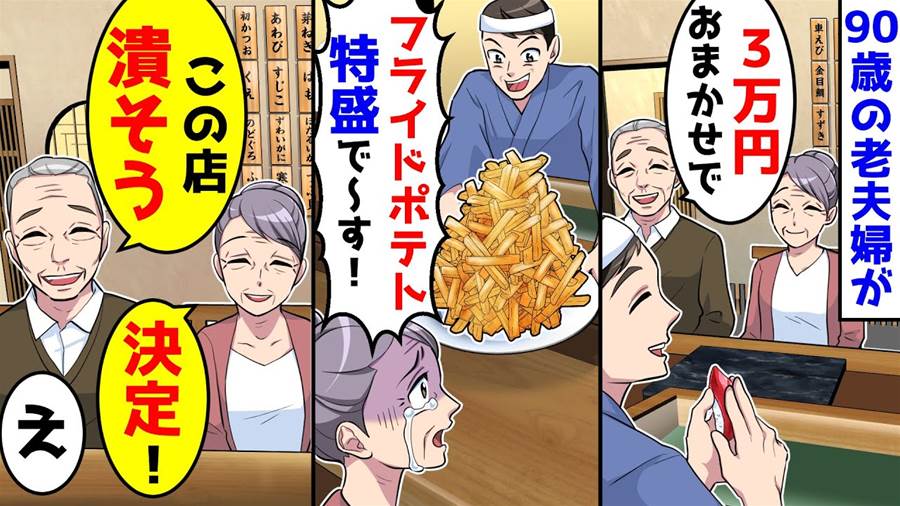 90才の老夫婦が、少ない年金握りしめ高級寿司屋へ。おまかせ頼むが、出て来たのは